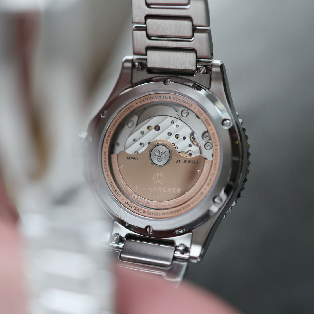 TIDEVAND is powered by an automatic movement, the Premium-Series Miyota 9015 movement.