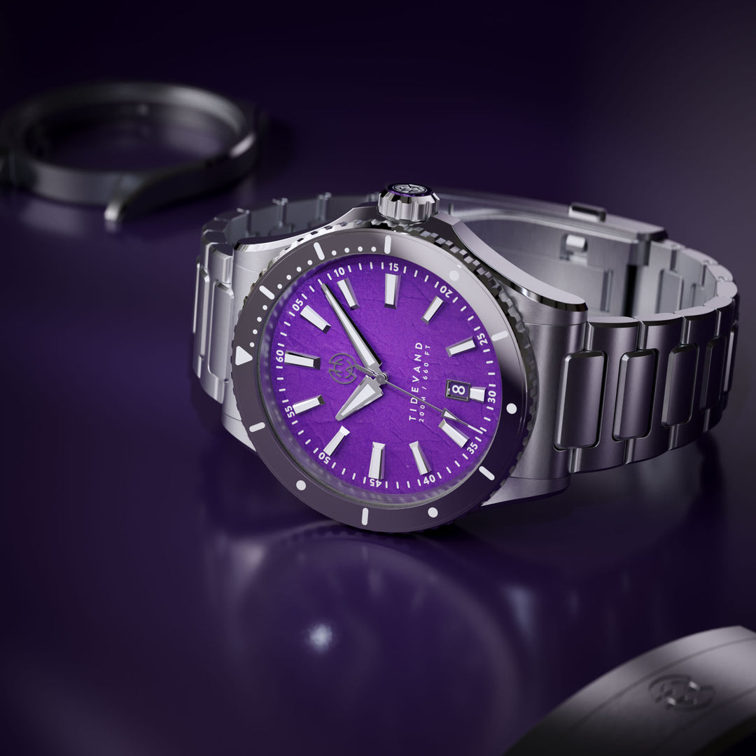 On selected TIDEVAND Element models, the bezel is crafted from tungsten - an exceptionally durable, virtually scratch-proof metal. As one of the most exposed parts of a watch, the bezel is prone to wear, but tungsten helps preserve its clean appearance over time.