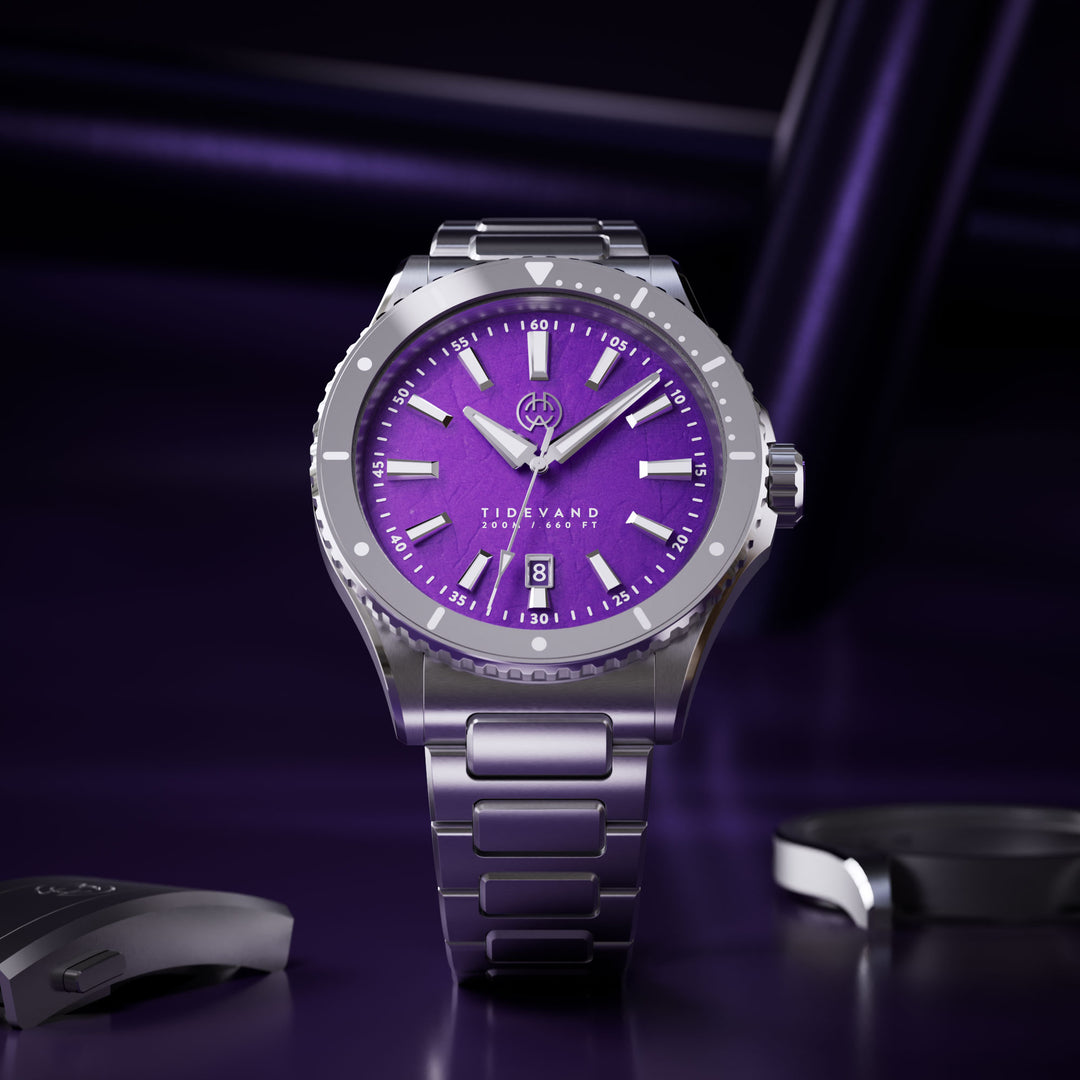 TIDEVAND Element draws inspiration from nature’s raw beauty and the ever-changing forces of the sea. Featuring dials crafted from natural materials such as Red Agate, Amethyst, Malachite, and Mother-of-Pearl - it's giving each watch its own unique expression and depth.