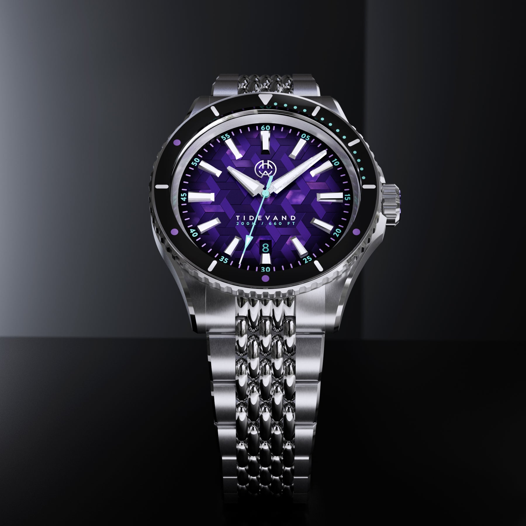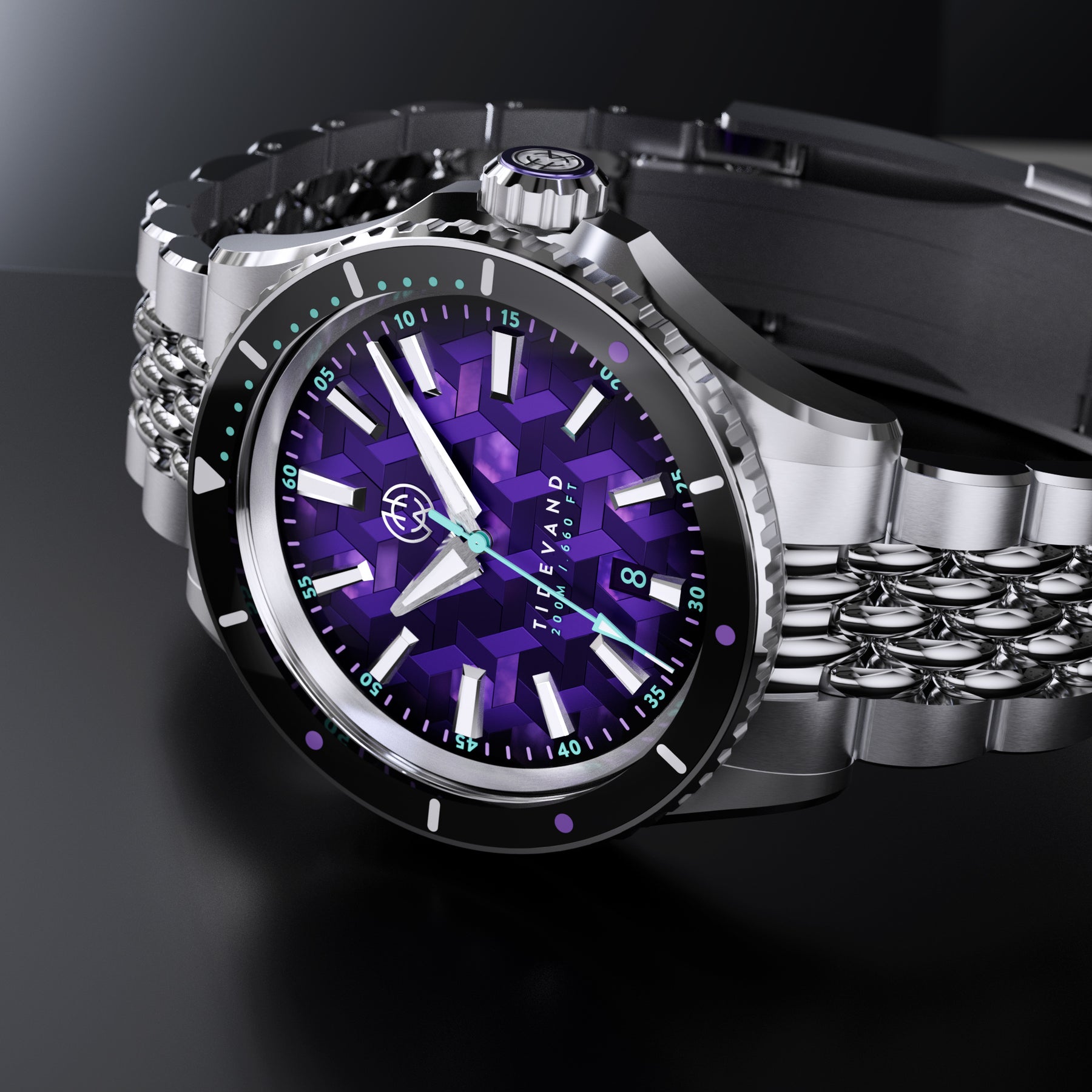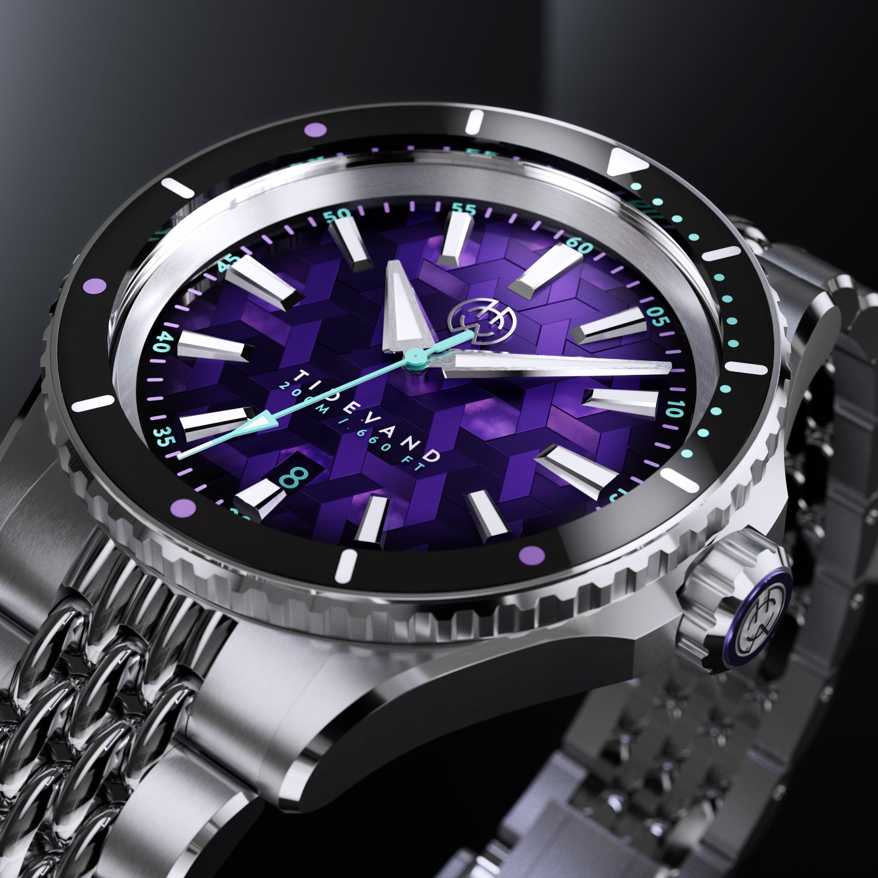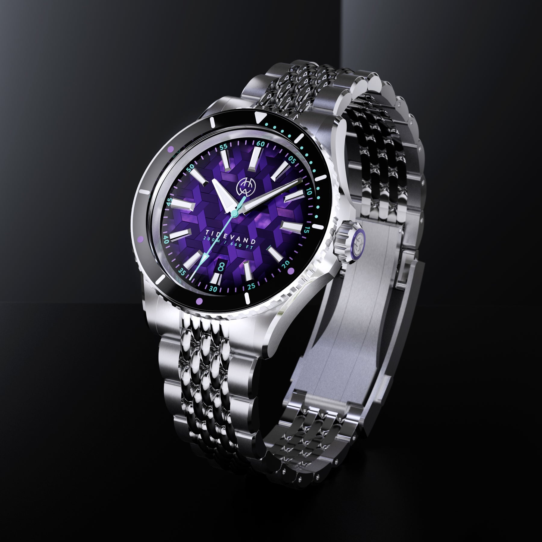 TIDEVAND is a purpose-built dive watch with 200 meters of water resistance, strong nighttime visibility, and a 120-click diver's bezel for precise timing. Designed for use in and around the sea, it balances rugged construction with refined finishing.