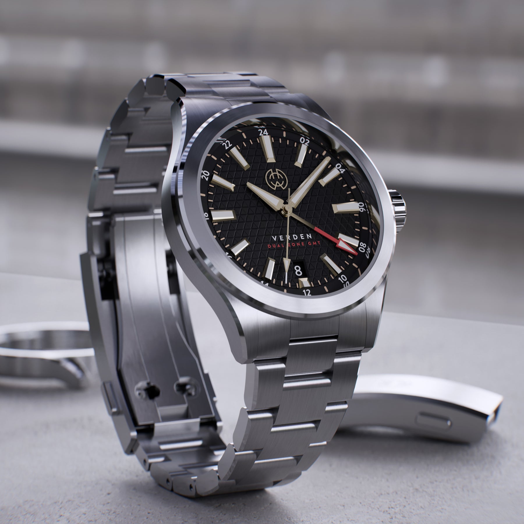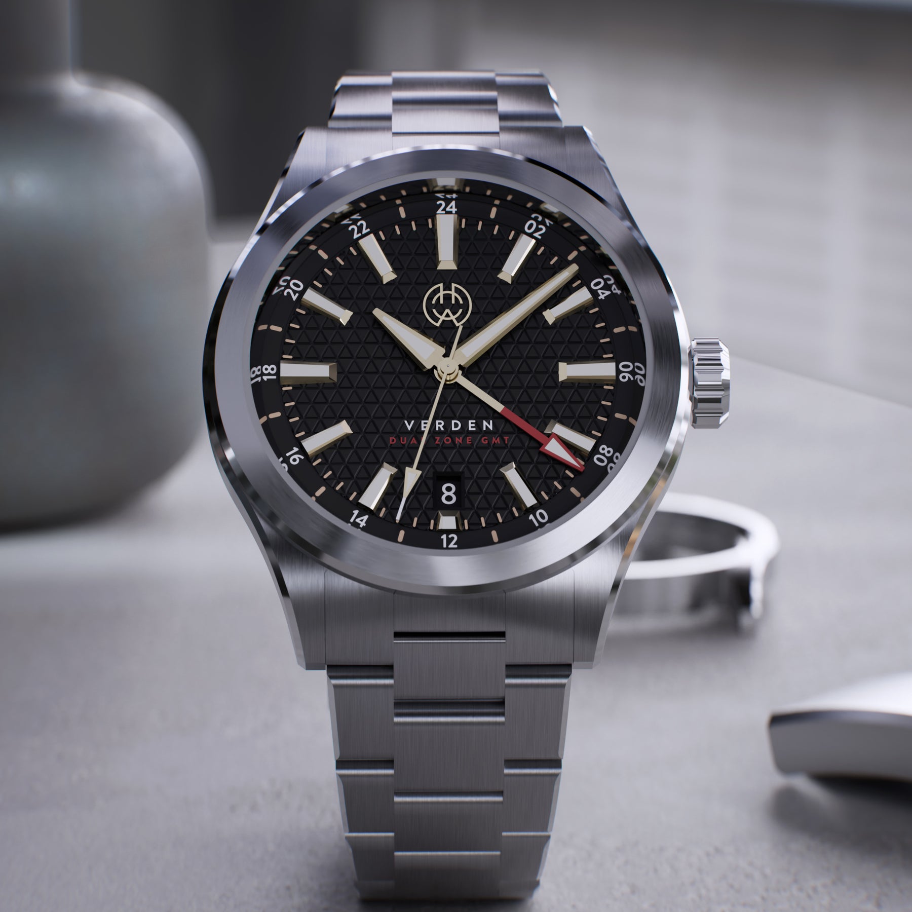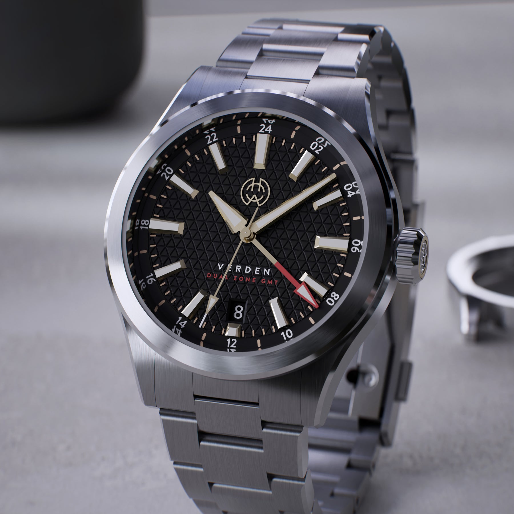 VERDEN GMT is a true traveler's GMT with dual-zone time tracking and independent hour adjustment for easy time setting upon arrival at your next destination.