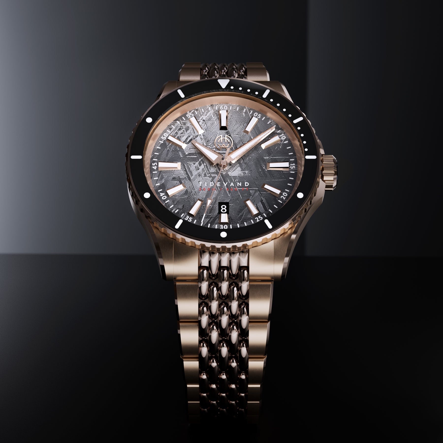 TIDEVAND is a purpose-built dive watch with 200 meters of water resistance, strong nighttime visibility, and a 120-click diver's bezel for precise timing. Designed for use in and around the sea, it balances rugged construction with refined finishing.
