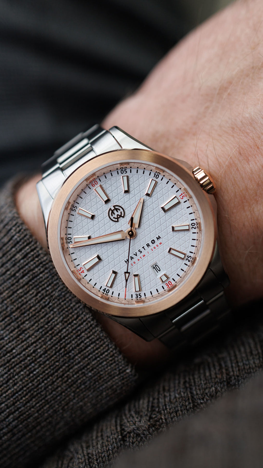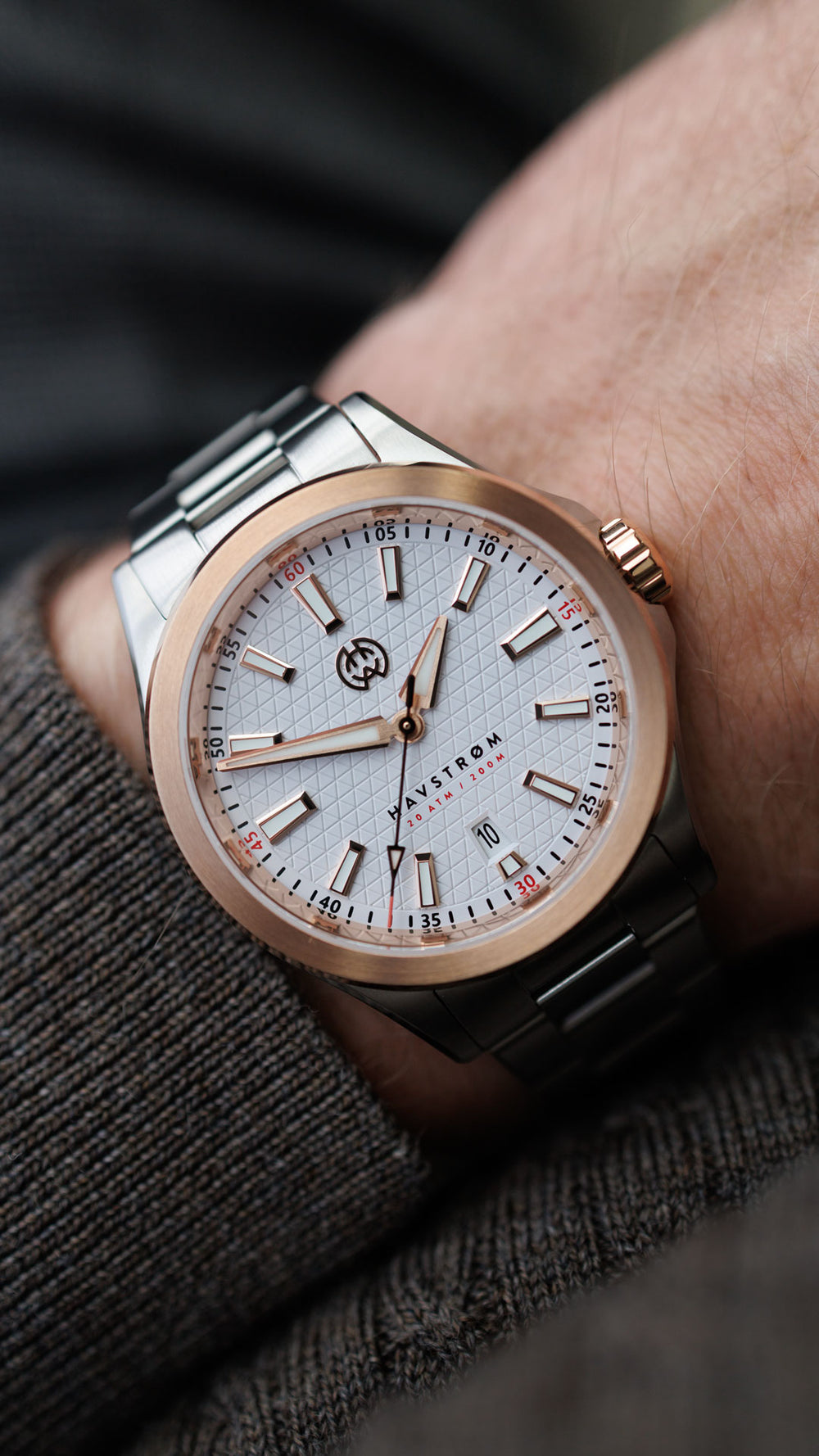 With its ultra-slim 10.45 mm case and 200-meter water resistance, HAVSTRØM is built for modern versatility.