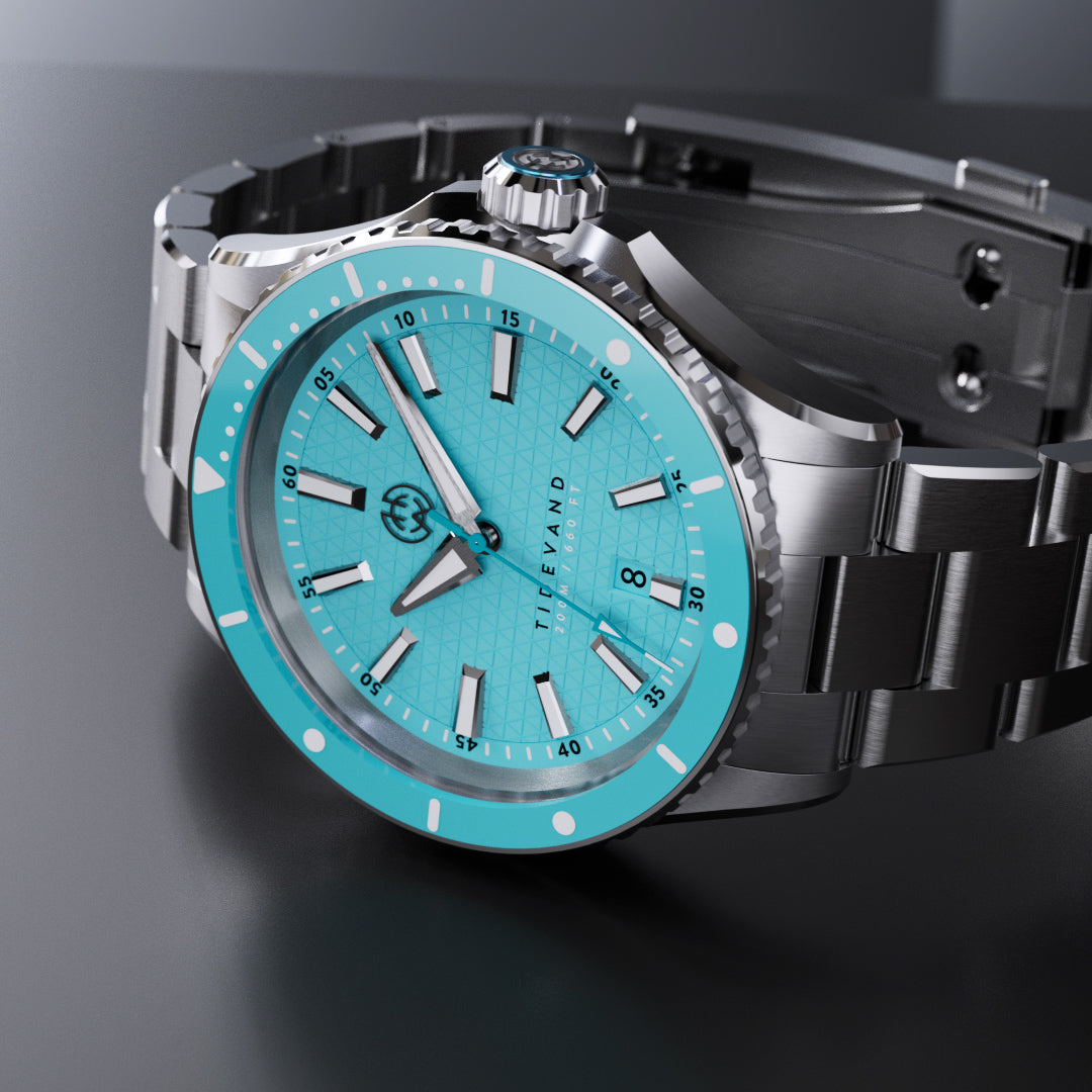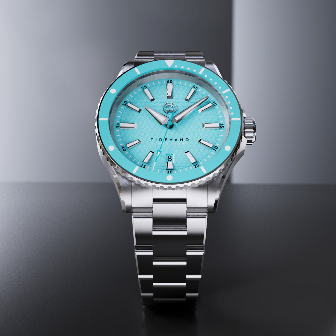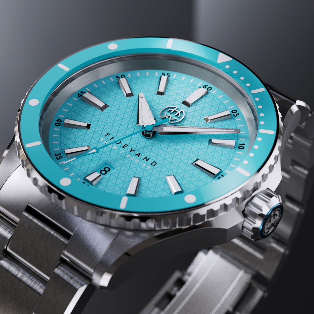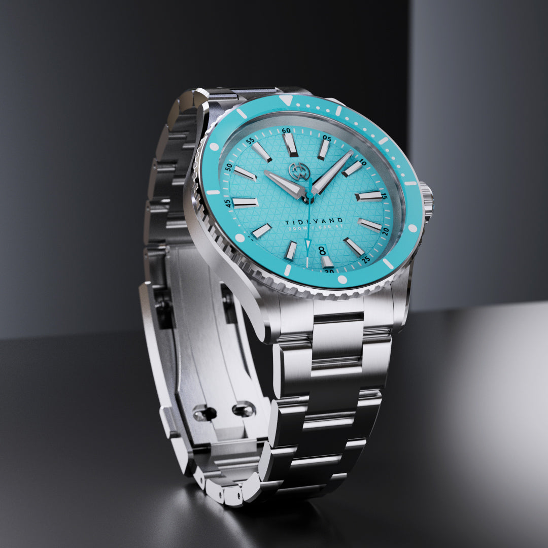 TIDEVAND is a purpose-built dive watch with 200 meters of water resistance, strong nighttime visibility, and a 120-click diver's bezel for precise timing. Designed for use in and around the sea, it balances rugged construction with refined finishing.