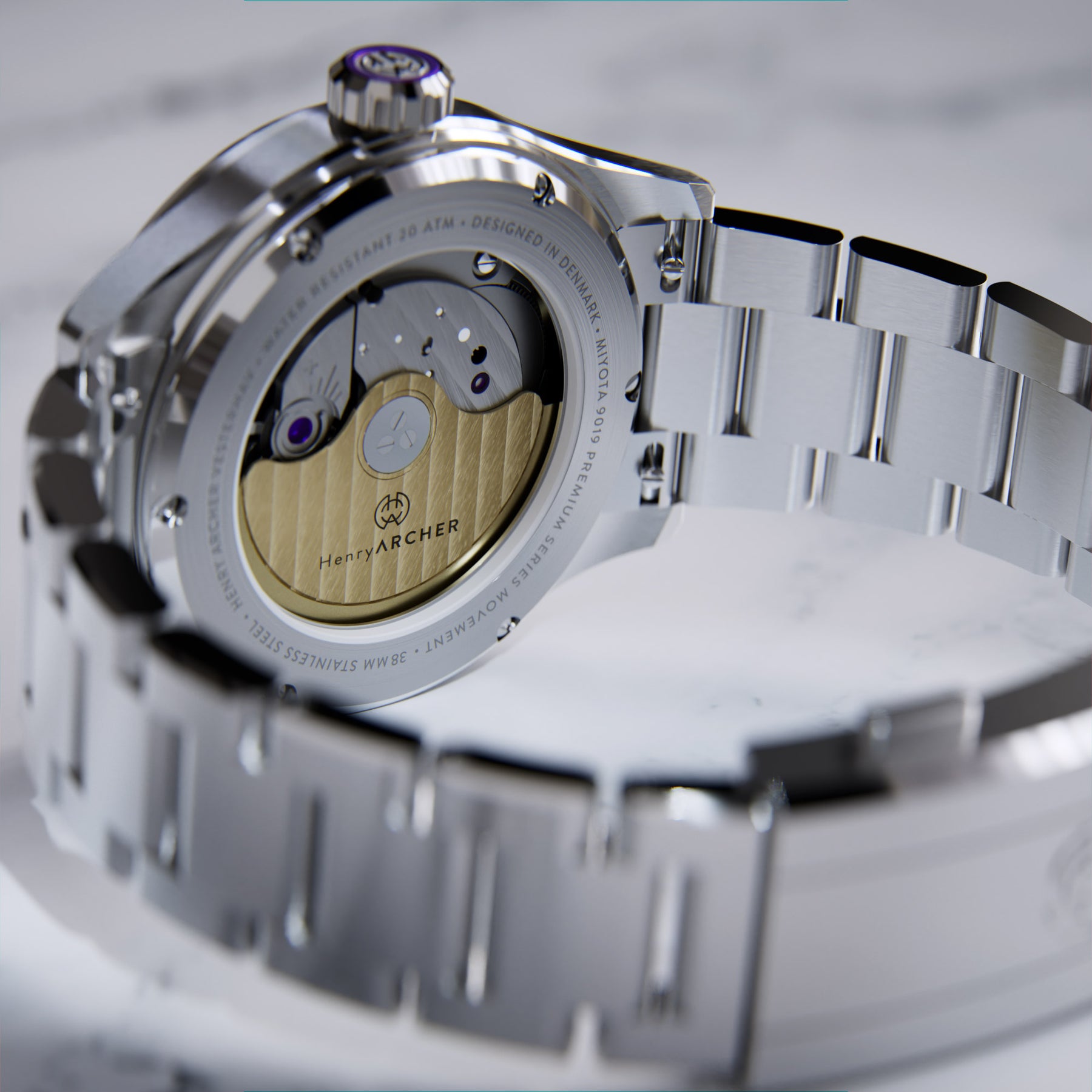 Premium Miyota 9019 automatic movement. 28800 BPH. Up to 42 hrs power-reserve.